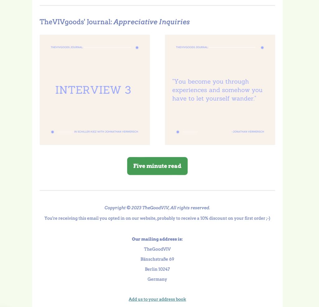 TheVIVgoods is the sustainable e-commerce fashion brand I founded and have run single handedly since 2019. As with any e-commerce business in a highly competitive market, digital marketing comprised 60% of my focus and time. It has been a high stakes experience in social media marketing, content creation, creative direction, e-mail marketing, web design and customer loyalty.